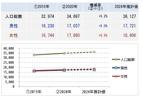 駅徒歩圏には、マンションも立ち並び、1km圏内の人口は約35,000人、2015年から2020年にかけても何と5%以上も人口増加している有望エリア。