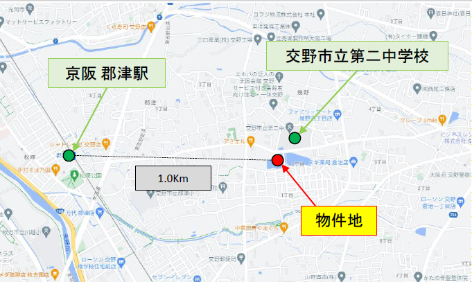 | 周辺環境 | 交野市立第二中学校、サンディ交野郡津店 |