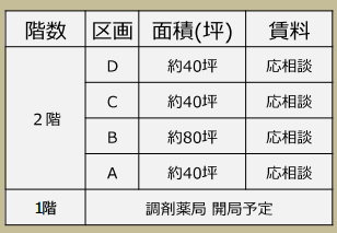| 賃貸料、共益費 | 詳しくはお問い合わせください。 |