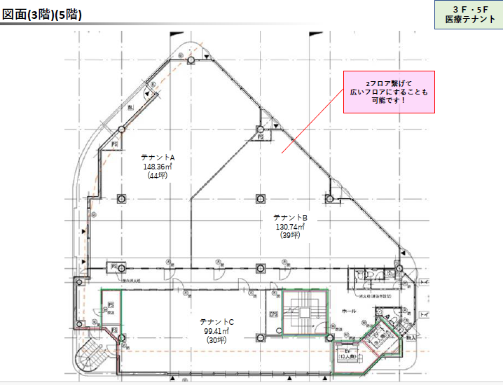 | 物件の階数 | 3階・5階(各テナントはフロア内) |