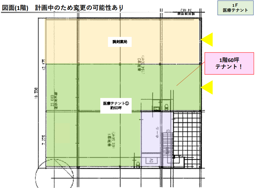 | 面積 | 医療テナント①:約60坪 <坪数の分割相談可能> 医療テナント②:約80坪 (眼科内定) |