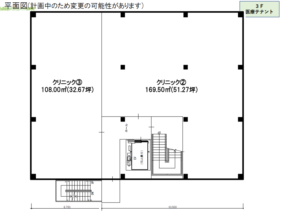 ワンフロア90坪と広い面積が用意できる希少な医療テナントです。
